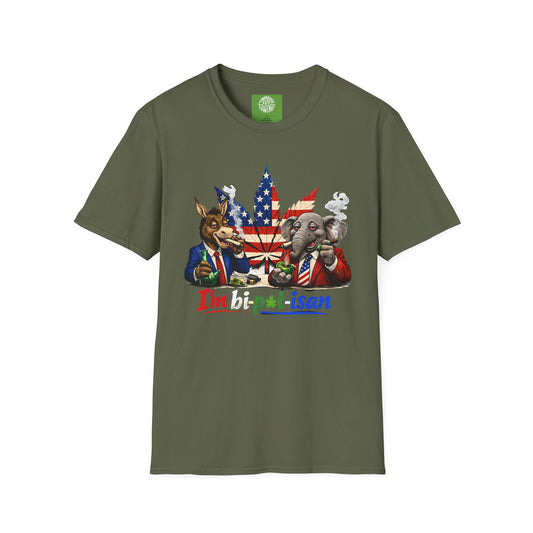 I'm bi-pot-isan Political pot weed T-Shirt — Bipartisan Elephant & Donkey Graphic