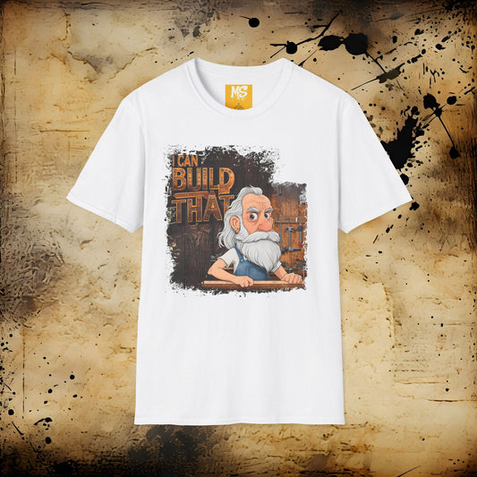 I Can Build That Unisex Softstyle T-Shirt – Perfect Gift for Builders and DIY Enthusiasts