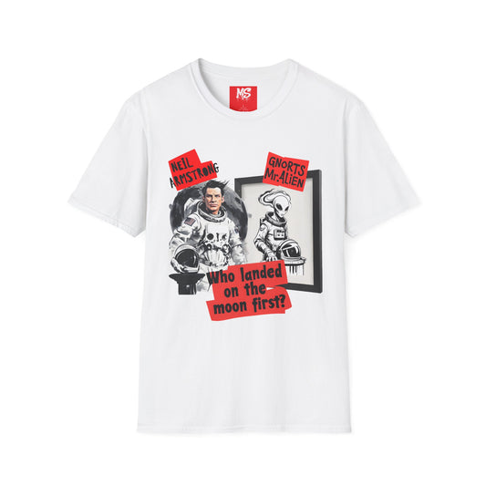 Space Humor Unisex Softstyle T-Shirt - Neil Armstrong & Alien Design
