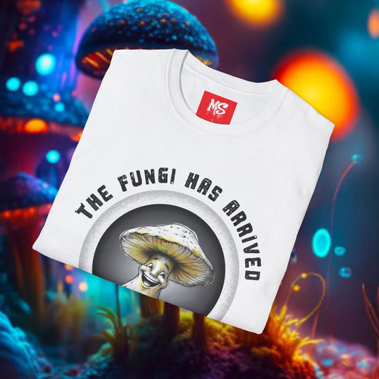 The Fungi Has Arrived Unisex Softstyle T-Shirt – Fun Mushroom Graphic Tee for Nature Lovers