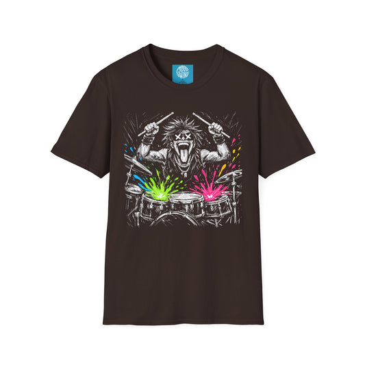 Drumming Graphic T-Shirt — Neon Splash Rock Band Tee