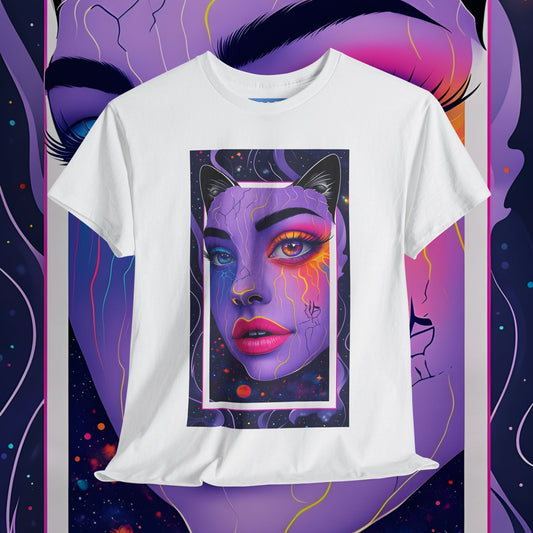 Mystical Cat Lady Unisex Heavy Cotton Tee - Vibrant Art Design
