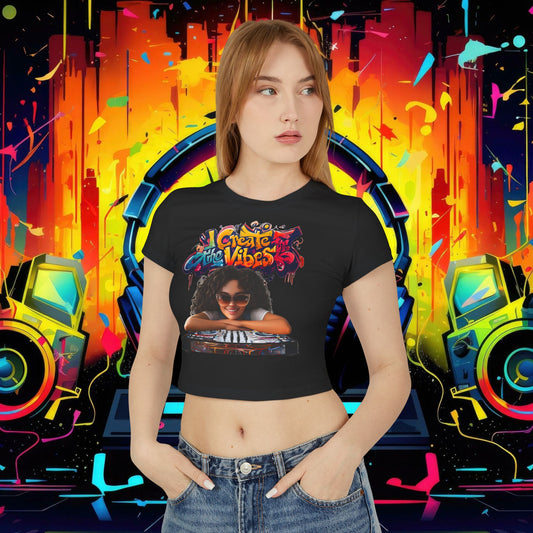 Create the Vibes Women's Baby Tee - Stylish Graphic Tee for Music Lovers