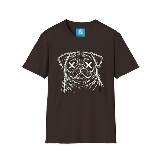 Pug crazy Tee — Distressed Sketch Pug Shirt with X-Eyed Design