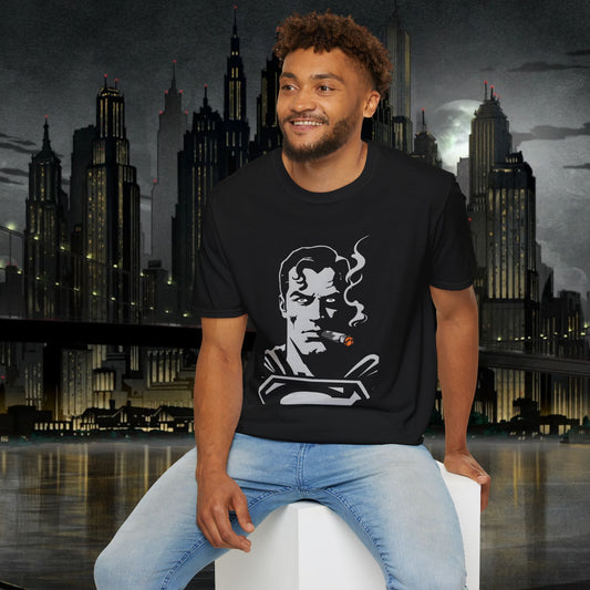 Superhero Superman Smoking Graphic T-Shirt - Unisex Softstyle