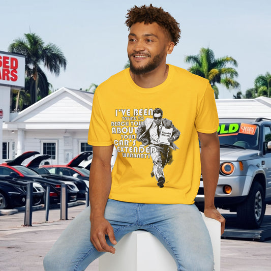 Funny Unisex Softstyle T-Shirt - 'I've Been Trying to Reach You About Your Car's Extended Warranty'