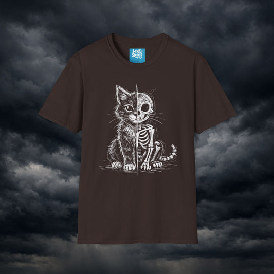Cat Skeleton T-Shirt — Half-Skull Cute Gothic Cat Tee for Halloween & Cat Lovers